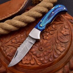 Unveil a blend of timeless artistry and rugged functionality with this elegant, handmade Damascus steel folding knife. More than just a tool, it’s a piece of art designed to be your reliable companion for all of life’s adventures, from the great outdoors to your daily tasks. Enrich your collection and feel the difference of a truly custom blade.