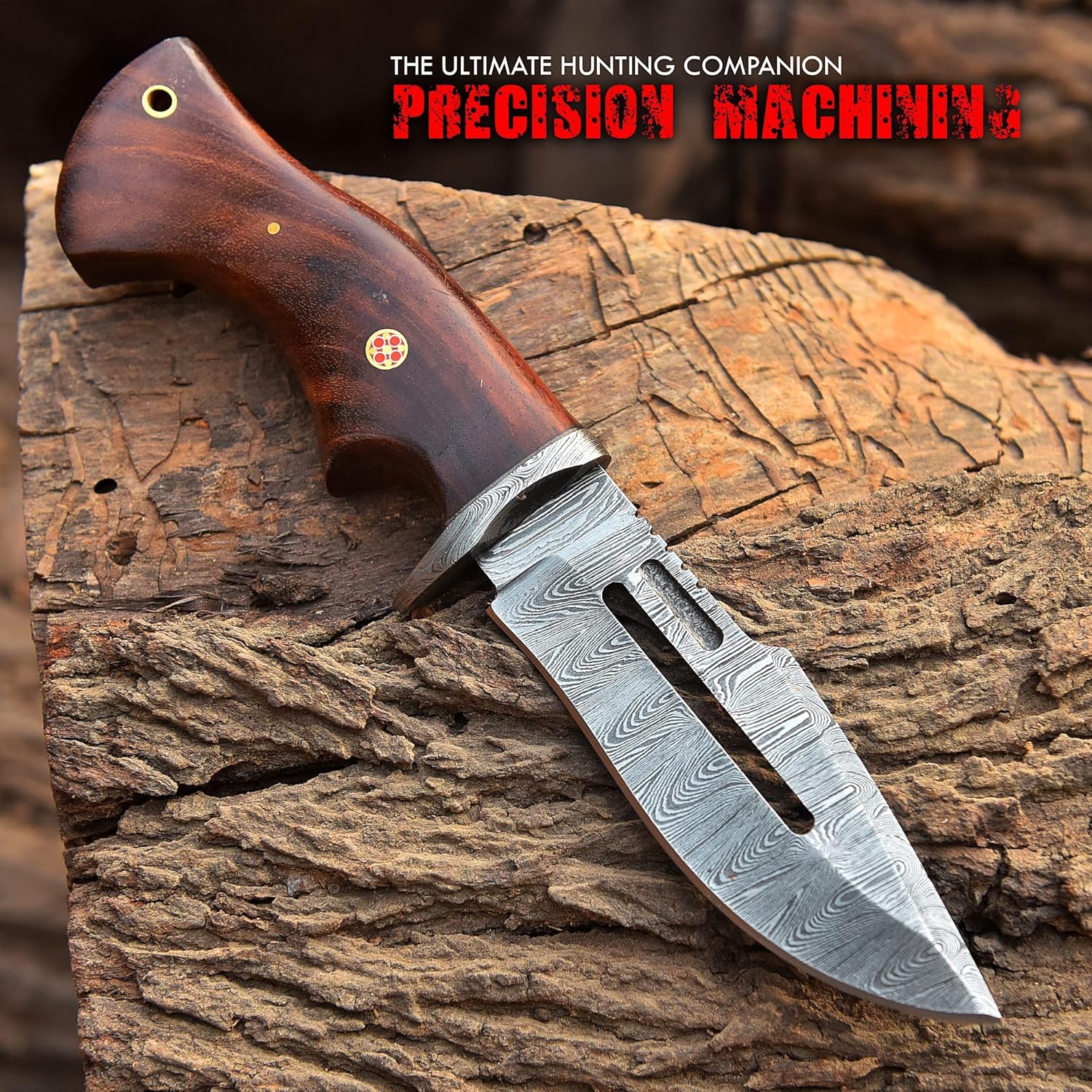 The heart of this knife is its stunning Damascus steel blade, forged from 288 layers of 1095 and 15N20 steel. The mesmerizing “Raindrop” pattern is a testament to the 5-cycle forging process, creating a blade with exceptional strength and an edge that lasts. Heat-treated to a 56-58 HRC Rockwell hardness, it strikes the perfect balance between durability and ease of sharpening.