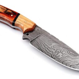 Forge your path in the great outdoors with the “Ninja Hunter,” a fixed-blade Damascus knife crafted for the serious adventurer. This isn’t just another knife; it’s a testament to timeless craftsmanship, designed to be a reliable partner on every expedition. From the mesmerizing twist pattern of the blade to the rich grain of the wood handle, each knife is a unique piece of functional art, ready for the challenges of the wild.