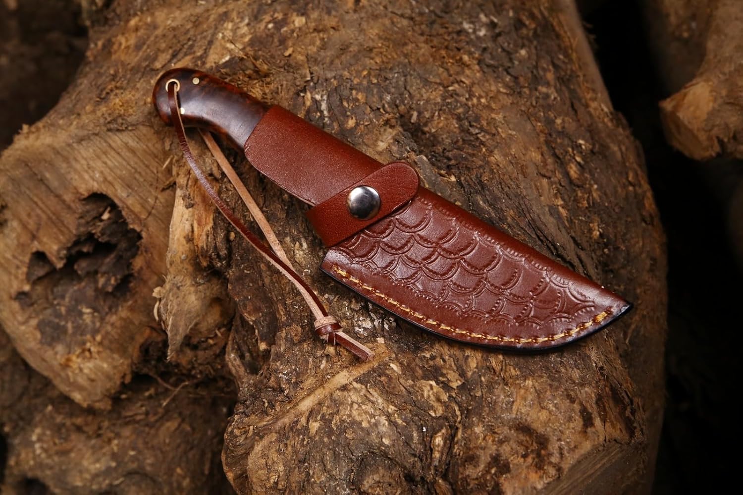 Feel the weight of tradition and artistry in your hand. This isn’t just another knife; it’s a testament to the timeless skill of expert blacksmiths, meticulously forged to be your most reliable companion in the wild. Each blade tells its own story through the mesmerizing, flowing patterns of Damascus steel—a signature of its strength and unique character. The razor-sharp, full tang blade is ready to tackle any challenge, from precise cuts for bushcraft to essential tasks in a survival situation.