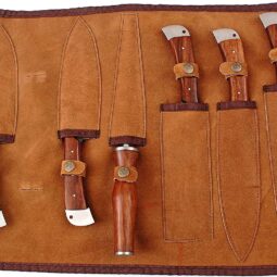 This 6-piece chef kitchen set is designed for professional cooks. Each blade is made from Forge Welding 1095 & 15N20 High-Carbon Steel, forming multiple layers with attractive patterns and added durability. The blades have invisible serrations and a 55-60 HRC hardness for strength and flexibility. Each damascus steel chef knife set features a Rosewood handle for comfort and style. Perfect for any kitchen, this set will elevate your cooking.
