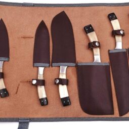This 6-piece Professional Utility Set is a perfect kitchen addition. It features high-quality Damascus steel blades and black horn finish handles and includes a chopper and cleaver for powerful, precise tasks. With superior craftsmanship, these damascus steel cooking knife setare built to last. Clean with a cloth and apply vegetable oil afterward to prevent rust. Store them oiled for maximum protection. Get yours today and start slicing like a pro!