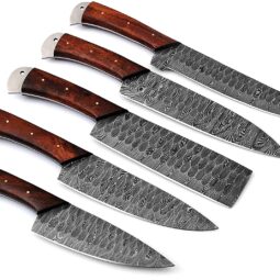 This Kitchen Set is perfect for the chef in you. Featuring five forged blades, including a chopper/cleaver and personalized chef knife, each damascus steel knife setcrafted from high-quality Damascus steel with 512 layers. The rosewood handles and lengths ranging from 9″ to 11.5″ ensure durability and suitability for everyday use. Keep the knives dry and apply vegetable oil or lubricant after use to maintain their condition. We offer a full money-back guarantee if you’re unsatisfied with your purchase. Make it yours today!